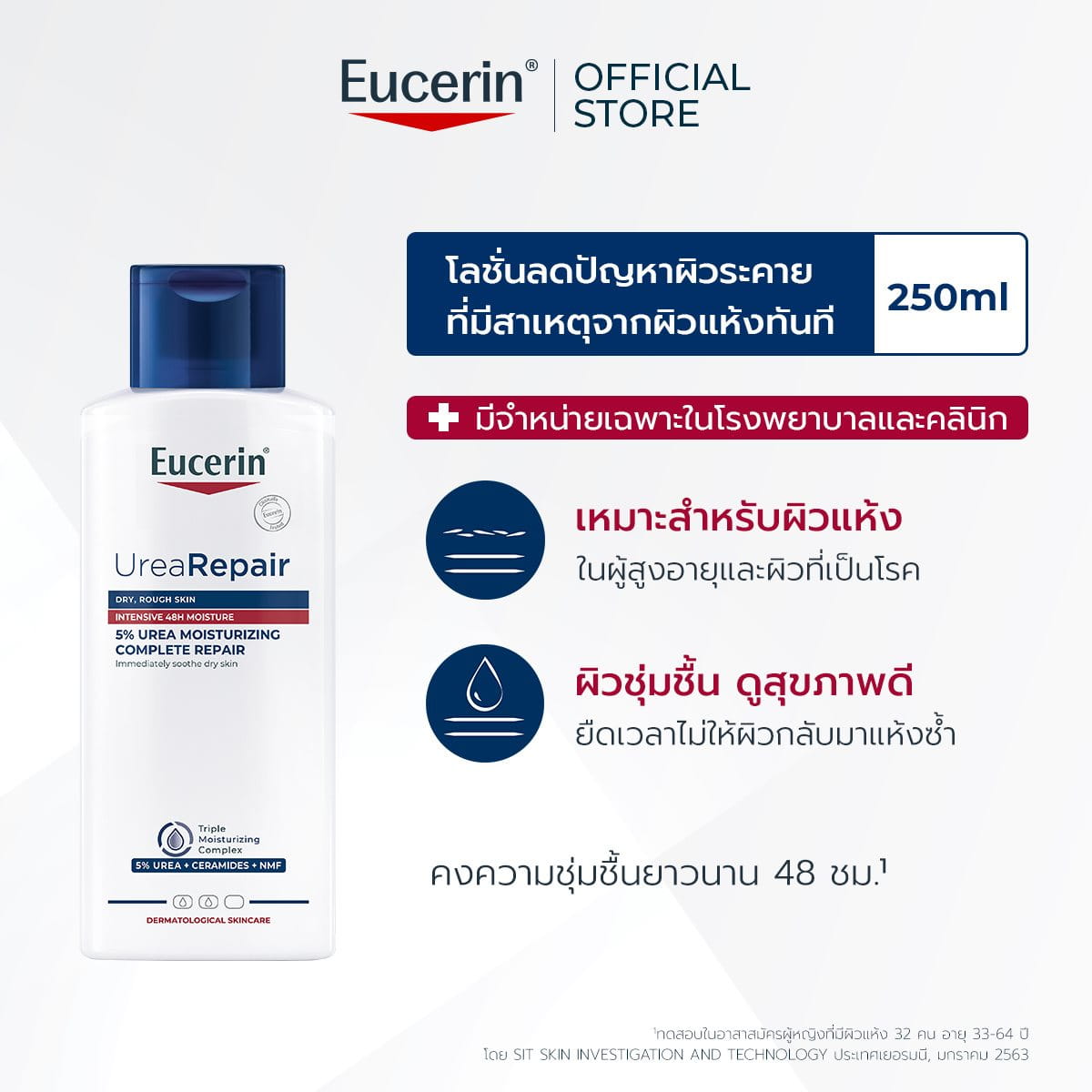 ด้วยผลลัพธ์ที่ผ่านการทดลองทางคลินิกแล้ว ยูเรียจึงเป็นดั่งมาตรฐานสูงสุดสำหรับการรักษาผิวแห้ง*