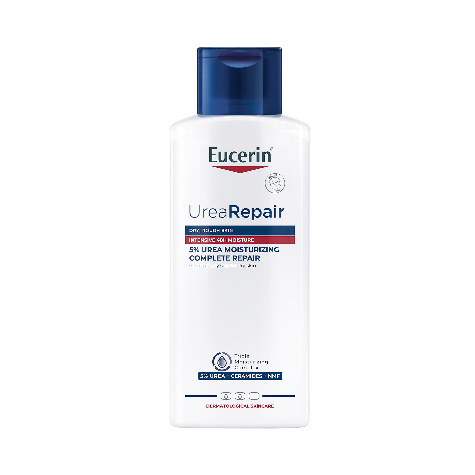 ยูเซอริน คอมพลีท รีแพร์ โลชั่น ลดปัญหาผิวแห้งมาก เป็นขุย ด้วย 3 กลไก เติมสารให้ความชุ่มชื้นตามธรรมชาติที่มีอยู่ในผิว (Natural Moisturizing Factors) ช่วยเพิ่มความสามารถในการยึดเกาะความชุ่มชื้นของผิวชั้นบน เติม Ceramides ไขมันที่จำเป็นภายในผิว เพื่อเสริมชั้นปกป้องผิวให้แข็งแรงขึ้นช่วยลดการสูญเสียความชุ่มชื้นออกจากผิว ด้วย Gluco-Glycerol ช่วยเพิ่มการส่งผ่านโมเลกุลน้ำไปยังผิว เติมน้ำสู่ผิว ผิวจึงกลับชุ่มชื้นขึ้น